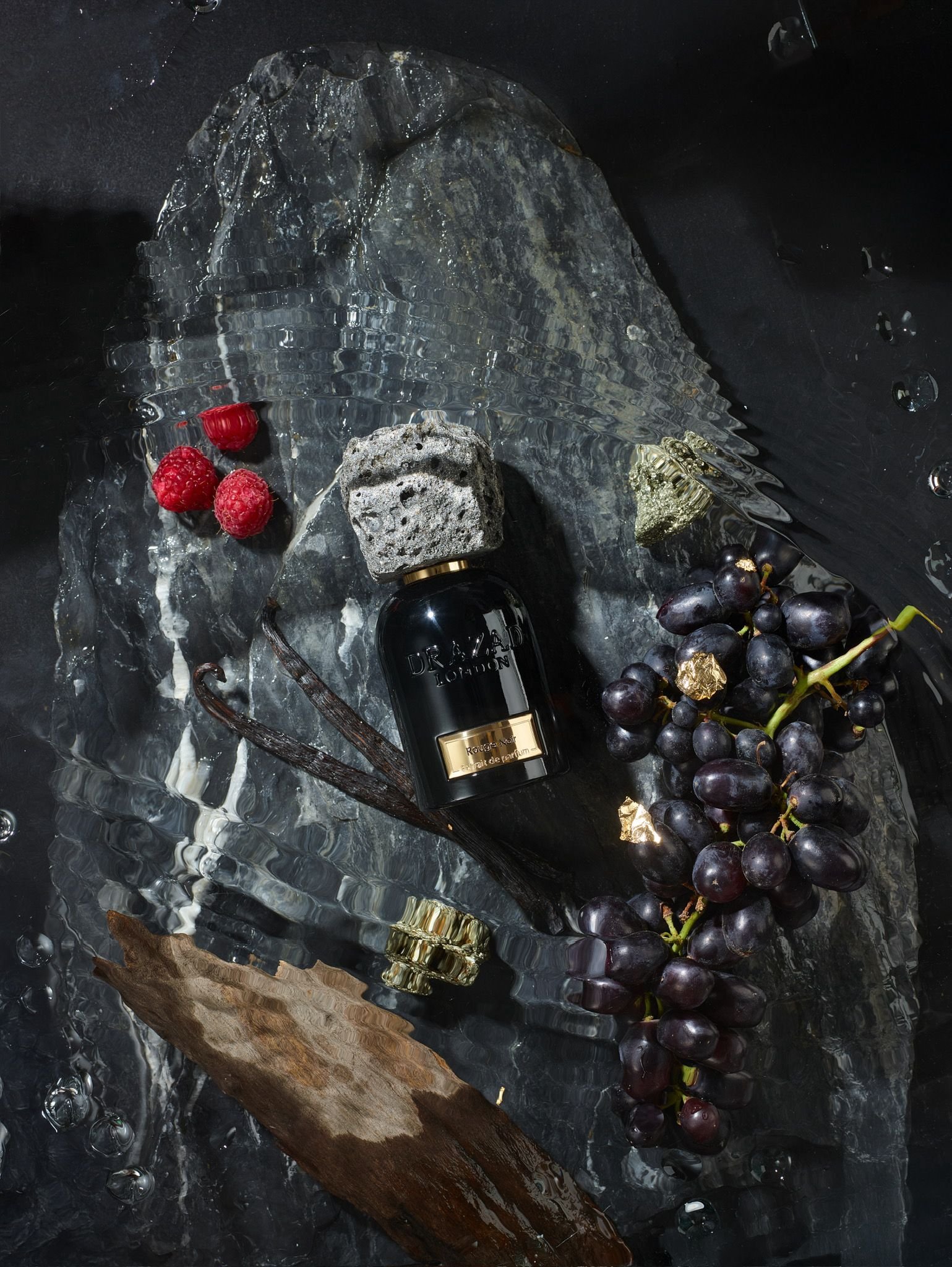Drazad London Rouge Noir הוא בושם יוקרתי בעוצמה מרשימה, המשלב פתיחה פירותית מפתה של ענבים, פטל ואשכולית ורודה עם לב פרחוני־מתוק של ורד דמשק, שורש אוריס וקרמל. הבסיס העמוק של אוד, עור ווניל מעניק לניחוח עומק חושני ושובל אלגנטי שנשאר לאורך שעות. התוצאה היא ריח יוניסקס מודרני, עשיר ובלתי נשכח — מושלם למי שמחפש נוכחות יוקרתית ומובחנת.