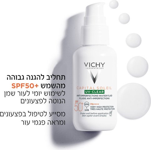Vichy Capital Soleil UV‑Clear SPF 50 הוא פלואיד הגנה יומיומי קליל במיוחד, המעניק הגנה גבוהה מהשמש תוך טיפול ממוקד בעור שמן ונוטה לפגמים. הפורמולה המתקדמת מסייעת להפחתת ברק, צמצום פגמים ושיפור מרקם העור, הודות לניאצינמיד וחומצה סליצילית. המרקם הלא‑שומני נספג במהירות ומשאיר את העור מאט, מאוזן ומוגן — פתרון אידיאלי לשימוש יומיומי, גם מתחת לאיפור.